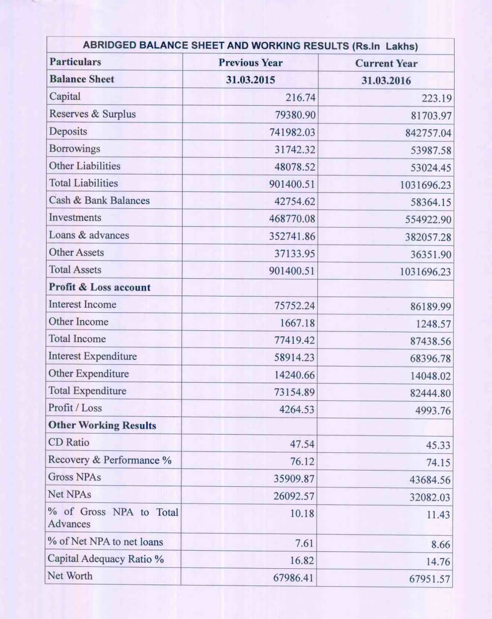Balance Sheet 2015-16